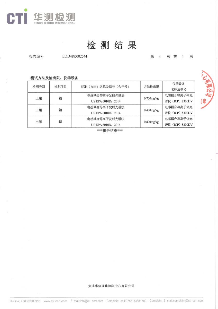 遼寧聯(lián)港染料化工有限公司土壤檢測結(jié)果